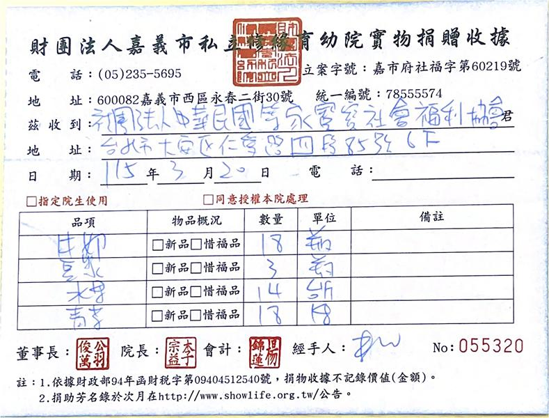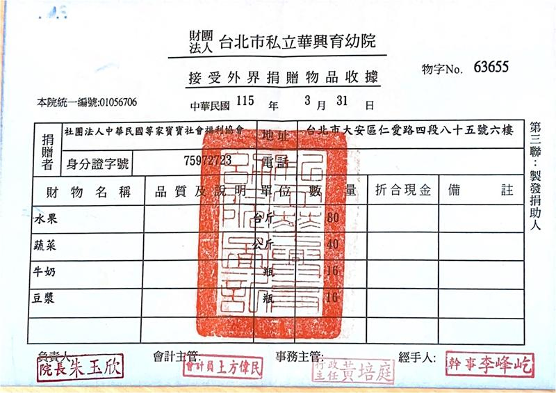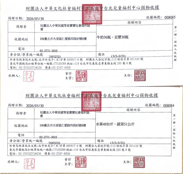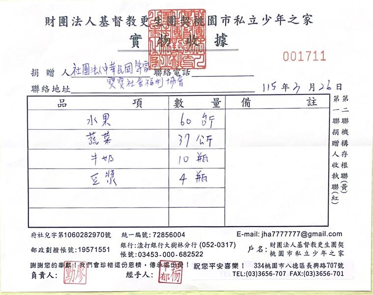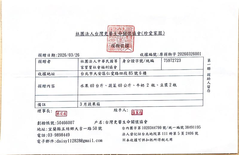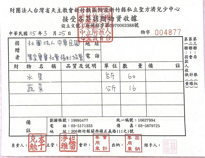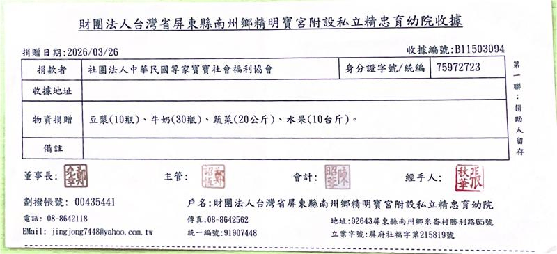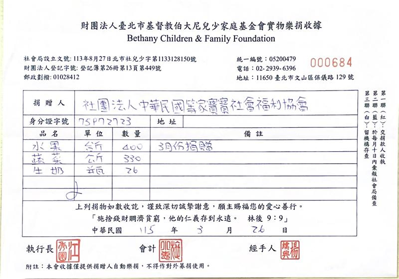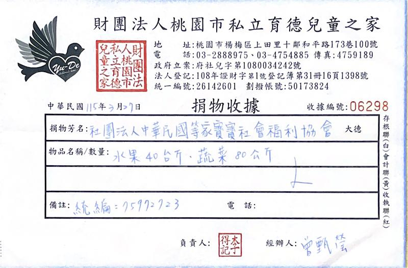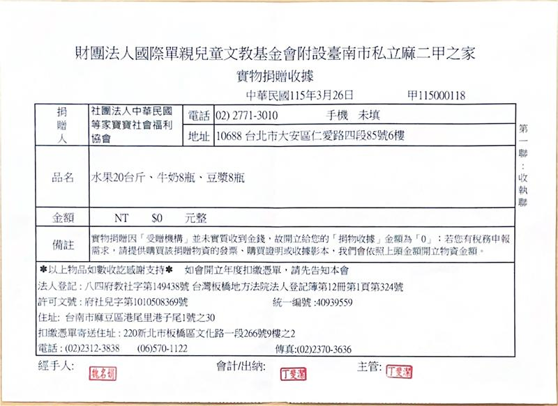 感謝每一位贊助者,您的每一份愛心我們都確實送達到育幼院囉!~邀請您與我們一起用新鮮蔬果、牛奶及豆漿陪伴等家寶寶健康地長大,用愛心豐富孩子們的童年😊