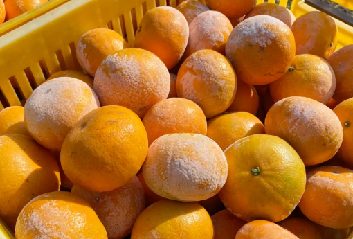 茂谷柑甜味較高、果肉爽口多汁,皮薄但相對不易徒手剝開,優點是耐貯運、很適合慢慢吃。也因為皮薄較容易曬傷,果農在生長期間會在果皮上塗抹白白的碳酸鈣作為防曬保護;採收後再用小袋一顆顆分裝,妥善保存約可放置 1~2 個月左右。